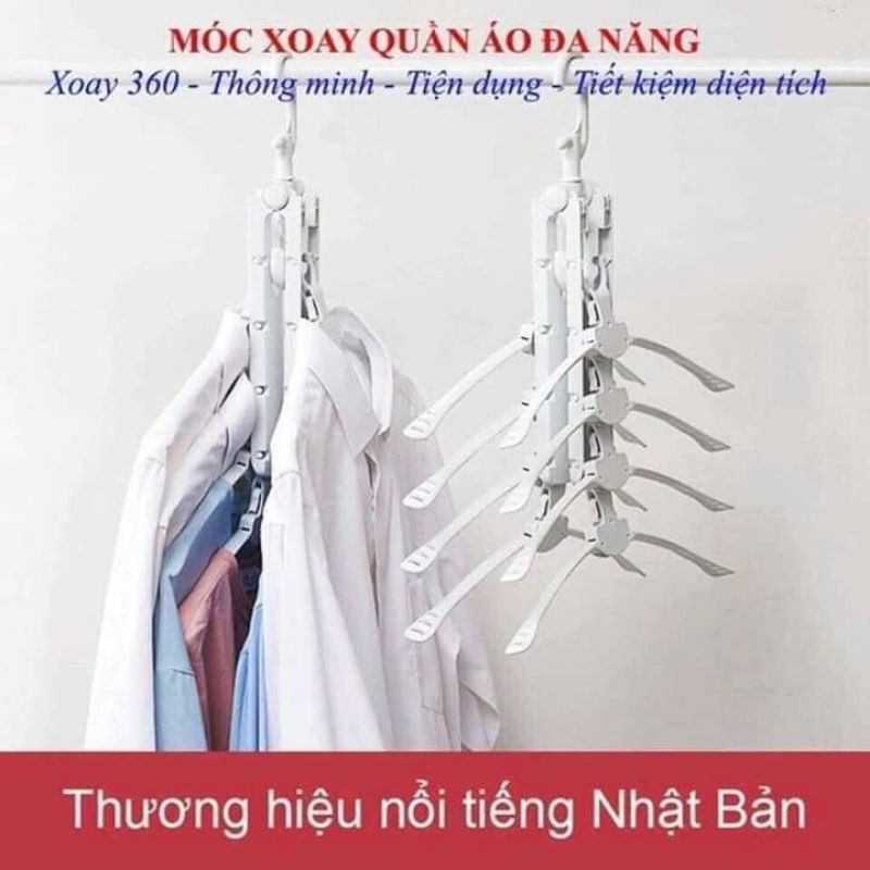 *Đặc điểm nổi bật: – Thiết kế thông minh, tiện dụng và đa năng có thể hợp với bất cứ tủ quần áo nào. – Chất liệu nhựa cao cấp cứng cáp với thân, khung và các cạnh gờ gắn kết chắc chắn, đảm bảo cho thời gian sử dụng lâu dài. – Một bộ móc treo đa chức năng đến 8 chiếc móc treo đủ kiểu truyền thống hoặc có thể treo kiểu xếp chồng lên nhau. – 8 móc sử dụng linh hoạt, sắp xếp vị trí và dễ dàng di chuyển. Giữ quần áo luôn thẳng, đặc biệt chống nhăn quần khi treo vào móc. – Trục có thể được xoay 360 độ giúp tìm kiếm quần áo thuận tiện hơn, tiết kiệm thời gian và công sức khi phơi quần áo của bạn cùng gia đình