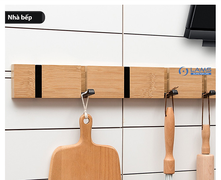 Thanh treo làm bằng gỗ tre; Đây là loại gỗ rất thân thiện với môi trường, gỗ được xử lý chống mối mọt, chống ẩm, chống nước nên có thể sử dụng ở cả những nơi ẩm ướt như phòng tắm, wc.