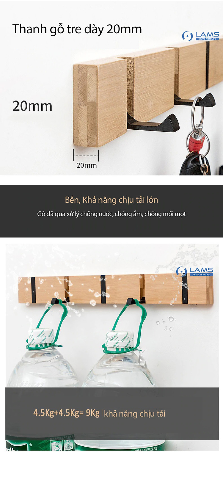 Mỗi móc đơn chịu lực tầm 2.5kg, cả móc chịu lực lên đến 12.5kg