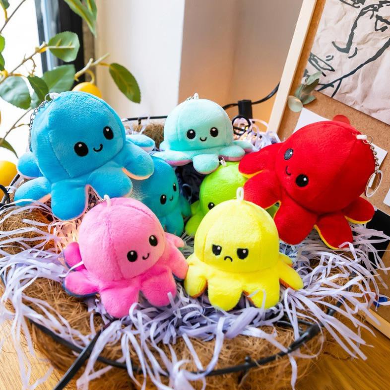 Giới thiệu Móc Khoá Bạch Tuộc Lật Mặt Đáng Yêu- Bạch Tuộc Thay đổi Cảm Xúc( Rộng 11cm * Cao 6cm)