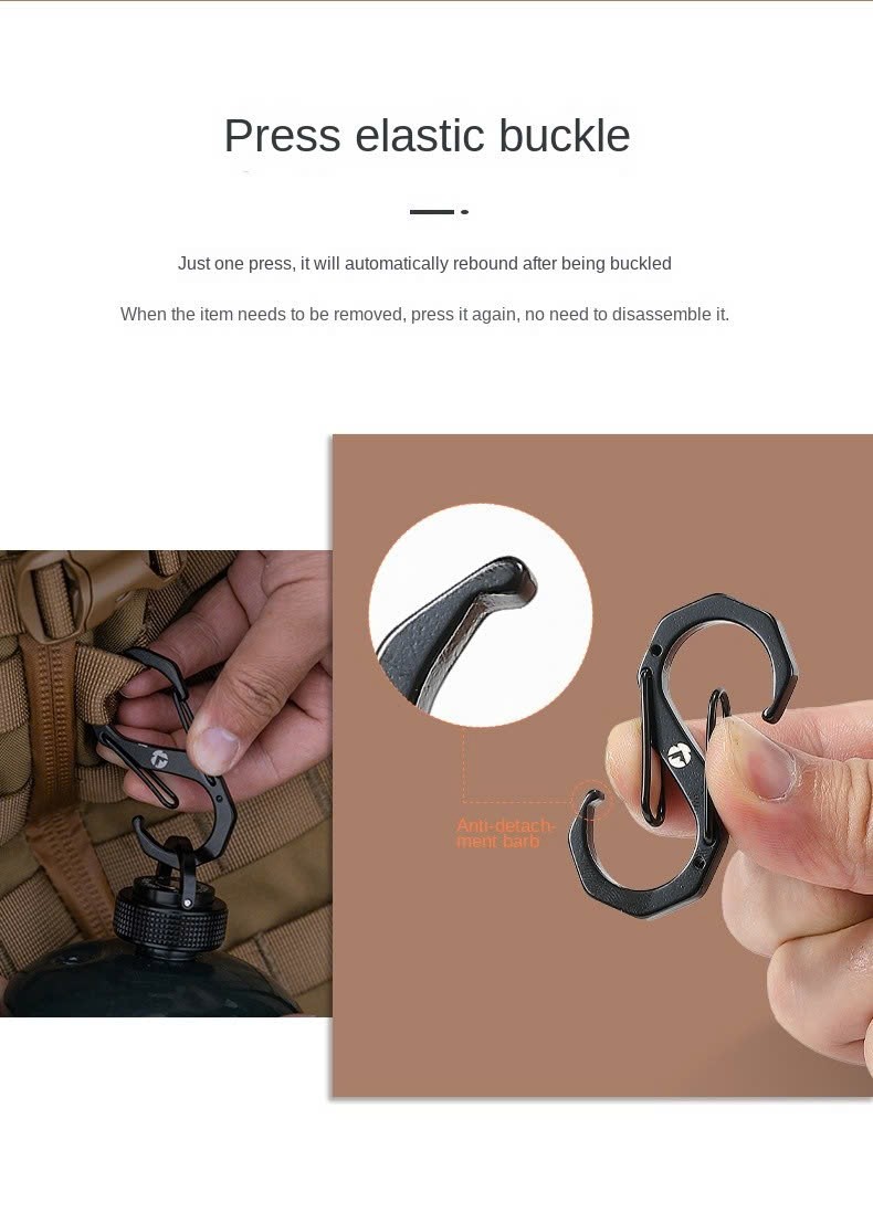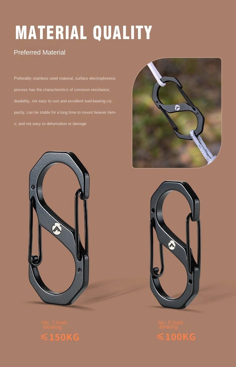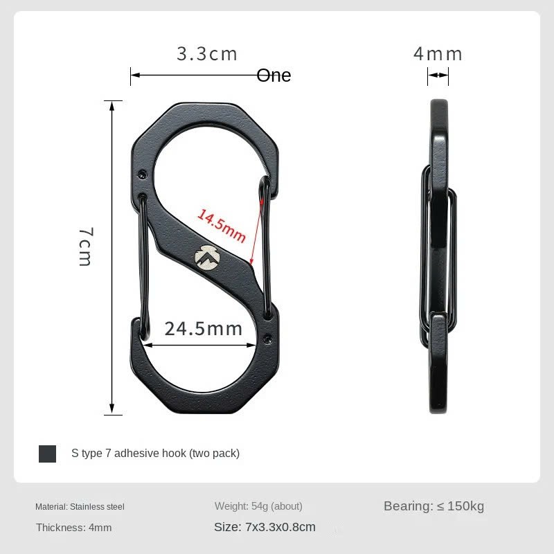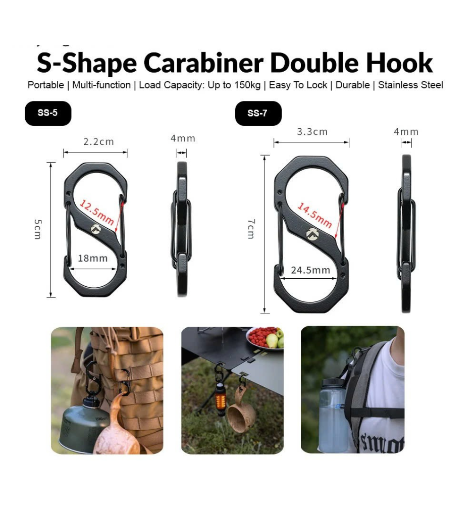 Nâng cao sự sắp xếp ngoài trời và hàng ngày của bạn với Móc treo đa năng hình chữ S CAMPINGMOON SS-5 SS-7 bằng hợp kim nhôm. Được chế tạo từ thép không gỉ chất lượng cao với bề mặt xử lý điện di, sản phẩm có khả năng chống ăn mòn, độ bền và chống gỉ vượt trội. Được thiết kế để có độ ổn định và khả năng chịu tải tuyệt vời, sản phẩm gắn chặt các vật dụng nặng trong thời gian dài mà không bị biến dạng hoặc hư hỏng. Khóa đàn hồi ép đảm bảo gắn và tháo dễ dàng, mang lại sự tiện lợi khi xử lý nhiều vật dụng khác nhau. Thiết kế treo hai chiều hình chữ S linh hoạt của sản phẩm phù hợp với nhiều mục đích sử dụng, lý tưởng để treo đèn, gắn thiết bị cắm trại, bảo vệ chìa khóa và khóa kéo ba lô, giúp đơn giản hóa cuộc sống hàng ngày của bạn một cách dễ dàng.