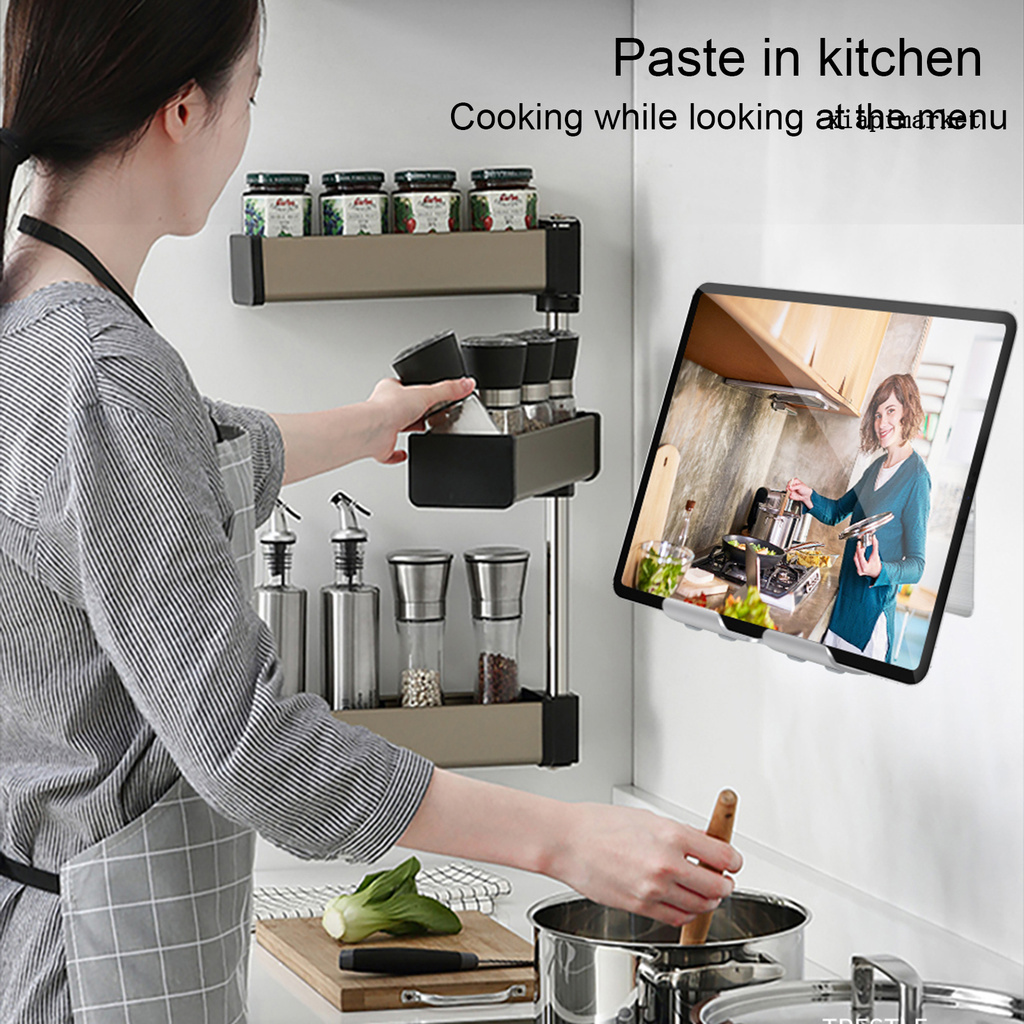 Description: The inner wall of the clip is designed with anti-slip pad, which can effectively fix the phone, not easy to fall off, and the phone will not scratch. With free rotation in multiple angles, the position of the bracket can be adjusted according to the length of the data line during charging. Made of high quality matrial, it is strong and durable, and even if placed in a place prone to splashing water, it does not necessarily corrode. The length of this product is 12cm, the width is 10.5cm and the height is 4.4cm. It is used in the bedside of the bedroom, kitchen, bathroom, gym, etc., and it is suitable for all kinds of walls, such as glass surface, bathroom mirror, smooth tile, metal plate, wood grain material, painted surface.