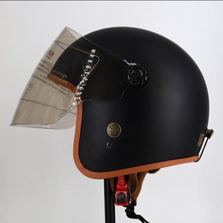 Mũ bảo hiểm 3/4 Đen kính full bò cạp - viền nâu, lót nâu cao cấp