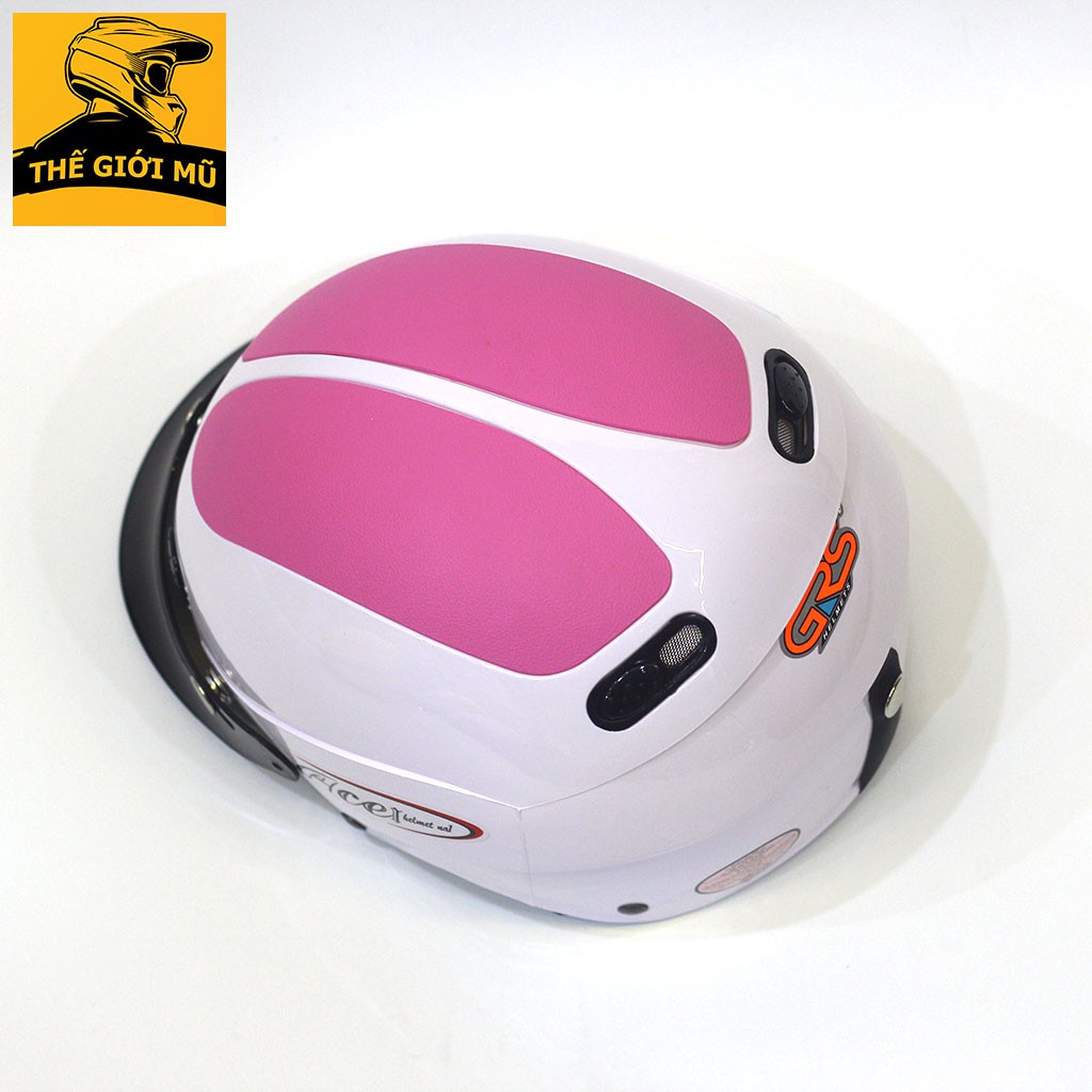Giới thiệu Mũ bảo hiểm nửa đầu GRS A102 màu trắng ốp hồng cho bạn gái