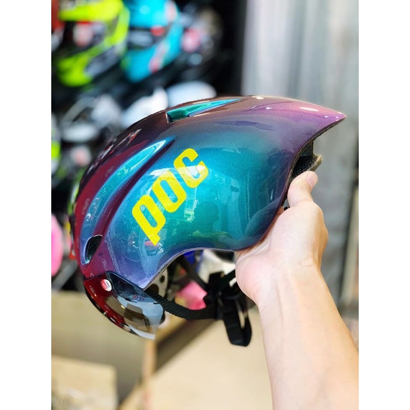 Mã hàng: POC P01 Sản phẩm: mũ bảo hiểm xe đạp có ống kính Trọng lượng: khoảng 285g Kích thước: Uni size M/L/ XL 56-62 cm Màu sắc: black red/Poc, black/Poc, blue/Poc, green/Poc, White/Poc, Redbull/Poc Lót bên trong: có thể tháo rời giặt, bảo vệ, thấm mồ hôi, kháng khuẩn