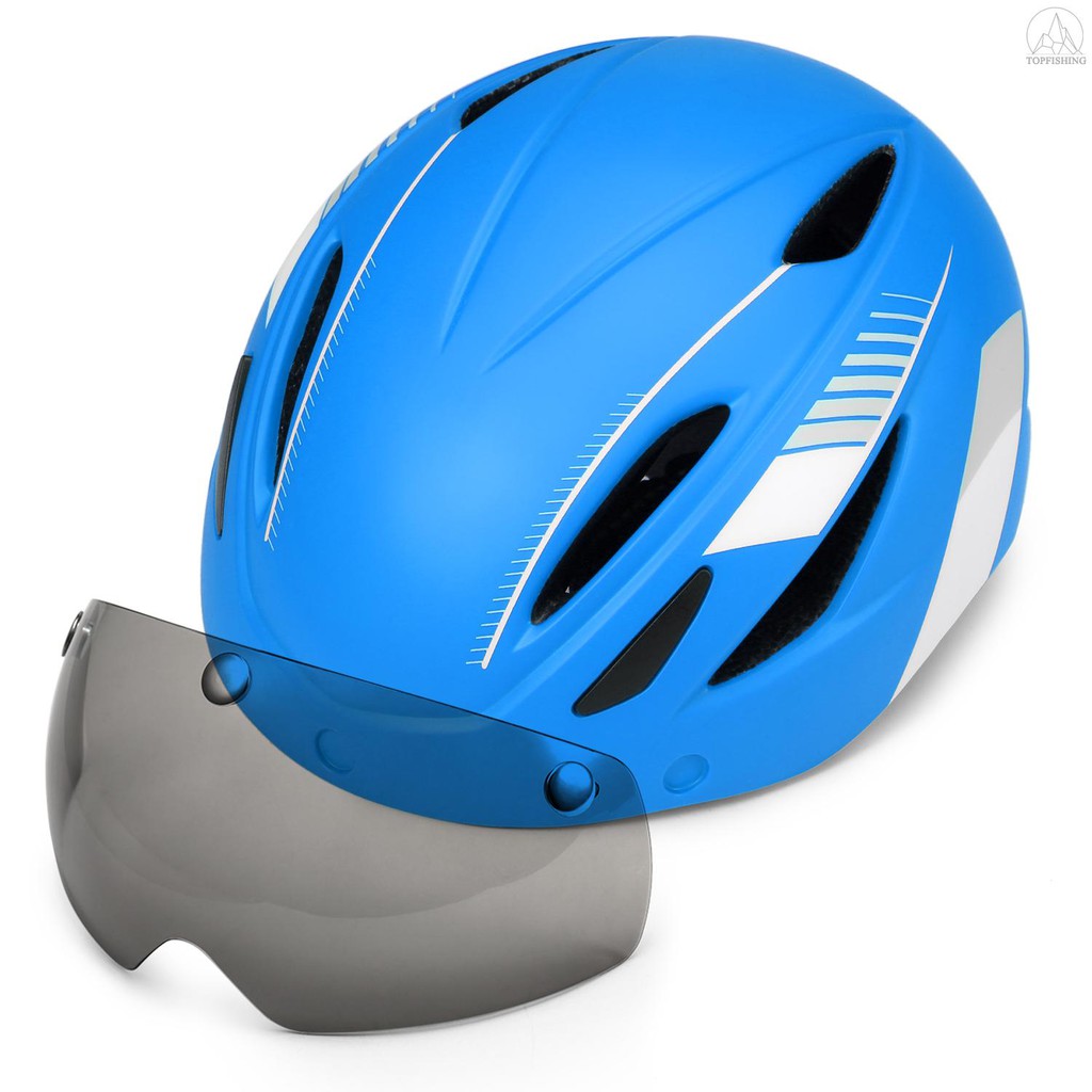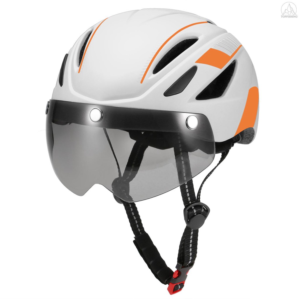 Bike Helmet Motorcycling Helmet with Rechargeable Waterproof Back Light Detachable Magnetic Visor UV Protective for Men Women Impact resistant PC with high density EPS foam to protect your head from unexpected injury,detachable magnetic visor is UV protective to block out harmful sunlight,and the back light provide safety lighting for night riding.A nice bike helmet for your riding trip!