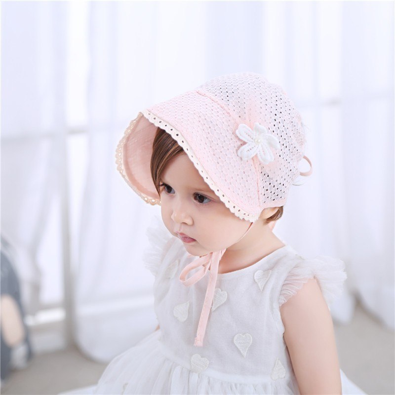 Thời trang trẻ em & trẻ sơ sinh > Phụ kiện trẻ em & trẻ sơ sinh > Mũ & mũ lưỡi trai || Mũ bonnet cotton đục lỗ đính hoa cho bé MB003