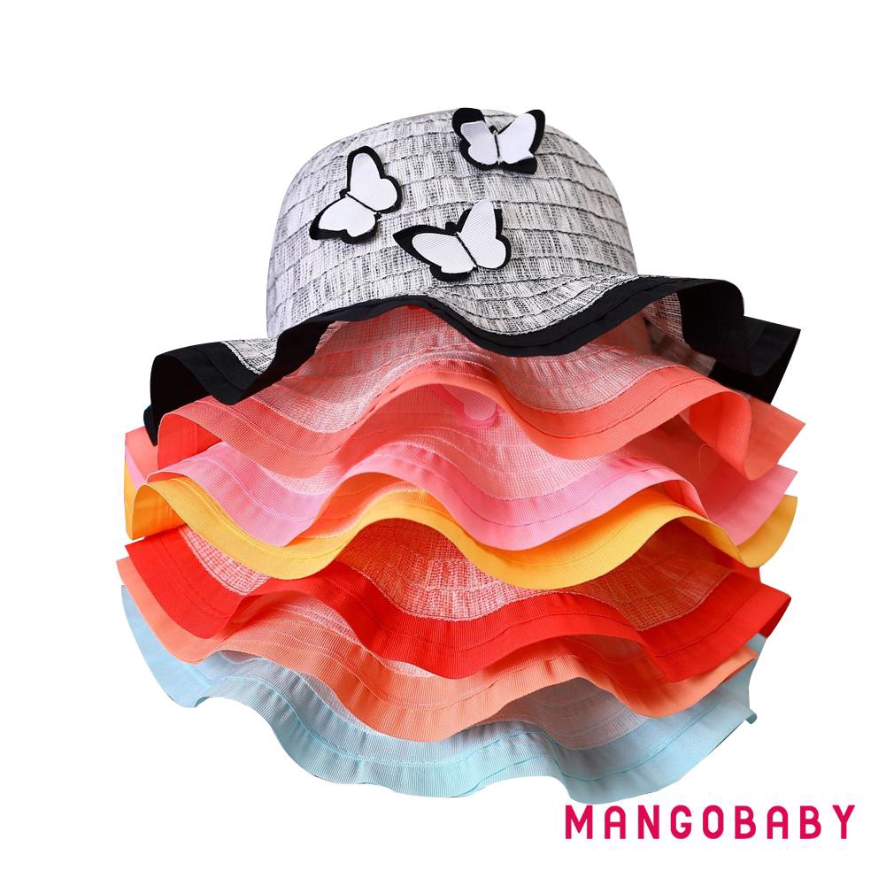 Baby Toddler Girls Sun Hats, Butterfly Wavy Floral Tea Party Cap Beach Wear Wide Brim Hat
