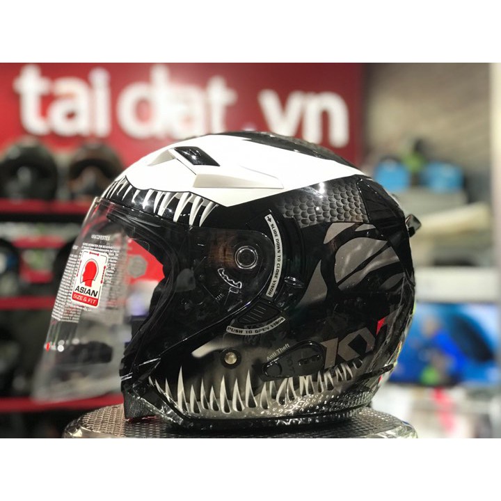 Mũ bảo hiểm 3/4 KYT VENOM có 2 kính: kính ngoài trong suốt dùng để che bụi bẩn, đất đá ; kính màu tối bên trong che nắng, chống tia UV, thao tác bật/mở dễ dàng khi đi tour. Nón bảo hiểm 2 kính Venom có trọng lượng trung bình, mút lót mũ ôm và thoát khí tốt đem lại cảm giác thoải mái, khô thoáng khi dùng phù hợp cho các Biker chạy tour, đi phượt gần. Nón bảo hiểm KYT Venom Marvel Venom là một sự lựa chọn tuyệt vời cho những Biker thích phong cách " Phản anh hùng " nhưng lại cực cool ngầu nhé ! Sản phẩm được lắp ráp tại Việt Nam.