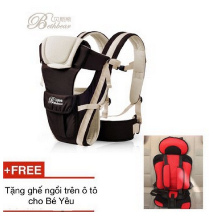 Giới thiệu [MUA 1 TẶNG 1] Địu em bé vải Polyester thoáng mát siêu mềm có xốp đỡ cổ Bethbear + Tặng ghế ngồi cho bé