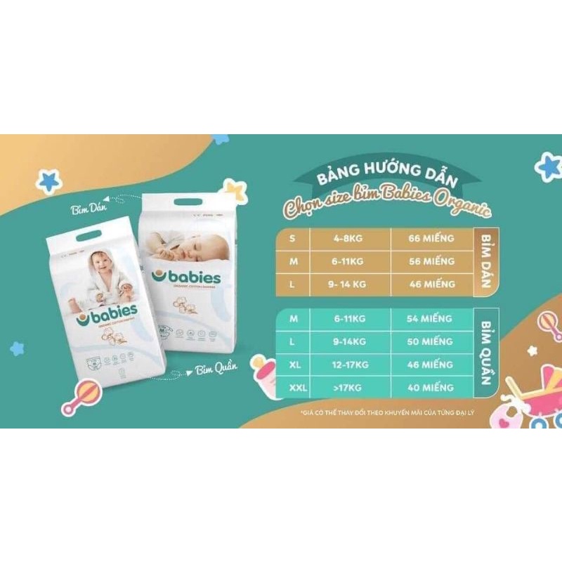 Giới thiệu [MUA 2B TẶNG QUÀ] BỈM DÁN/QUẦN BABIES ORGANIC CÁC SIZE S66/M56/L50/XL46/XXL40