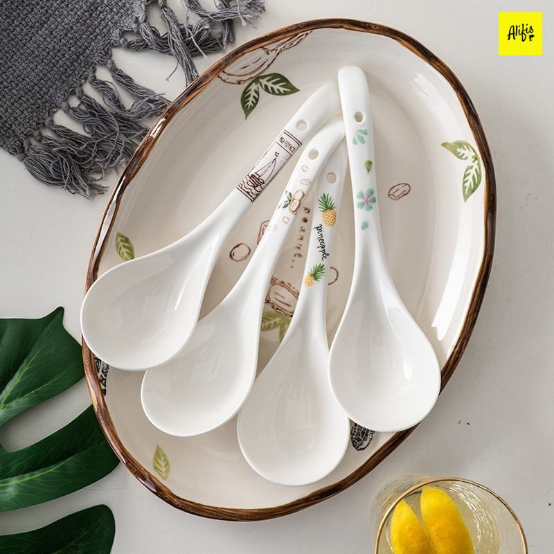 Giới thiệu Muôi múc canh, vá múc canh, muỗng sứ xúc canh bằng sứ nhiều họa tiết xinh xắn Alifis