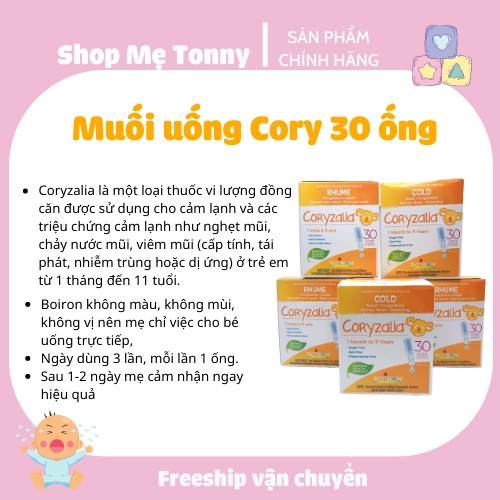 😱😱Muối uống vi lượng đồng căn- BOIRON Coryzalia Cold 30 D, 30 ML 👉👉Muối uống cho bé- BOIRON Coryzalia Cold 30 D, 30 ML là thuốc vi lượng đồng căn giúp giảm các triệu chứng cảm lạnh. Công thức đặc biệt cho trẻ em và trẻ nhỏ. Coryzalia là một loại thuốc vi lượng đồng căn được sử dụng cho cảm lạnh và các triệu chứng cảm lạnh như nghẹt mũi, chảy nước mũi, viêm mũi (cấp tính, tái phát, nhiễm trùng hoặc dị ứng) ở trẻ em từ 1 tháng đến 11 tuổi. Thành phần của sản phẩm: + Coryzalia không đường, thuốc nhuộm và không chất bảo quản + Allium cepa 3CH : trị chứng chảy nước mũi + Belladona 3CH : trị chứng viêm mũi + Gelsemium sempervirens 3 CH : đau nhức đầu khi bị cảm + Kali bichromicum 3 CH : trị chứng mũi có nhầy xanh + Pulsatilla 3 CH : giảm chảy nước mũi và tắc mũi vào buổi đêm + Sabadilla 3 CH : trị chứng ngứa mũi hắt hơi Thông tin sản phẩm: + Xuất xứ : Canada + Dung tích : 30ml + Đối tượng: Dùng cho trẻ từ 1 tháng đến 11 tuổi