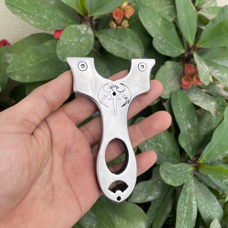 - Thân ná được cắt CNC từ inox 304 nguyên khối, được bo cạnh, hoàn thiện ở mức độ rất cao cho cảm giác cầm ná rất