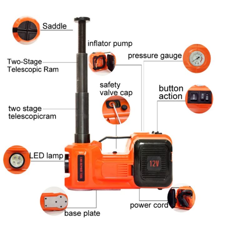 ✅ Trọng Lượng Bộ: 9.5Kg ✅ Sử Dụng Kết Nối: Jack Cắm. ✅ Điện Áp : DC12V ✅ Bộ nâng kích gầm điện: 150W ✅ Súng Tháo Đai Ốc: 85W ✅ Chiều Dài Dây Điện: 3,5 M ✅ Chiều cao nâng tối đa: 45cmm ✅ Lưu lượng bơm 35L/phút ✅ Đầu khẩu 17-19mm và 21-23mm ✅ Kích Thước : 33cm(R)*33cm(D)*19cm(C) ✅ Tải Trọng: 5000Kg ( 5 Tấn) ✅ Thiết bị kèm theo gồm dao cắt dây an toàn kết hợp búa đập kính trong trường hợp khẩn cấp 🌸 Bảo hành: Sản phẩm bảo hành 2 năm do lỗi nhà sản xuất