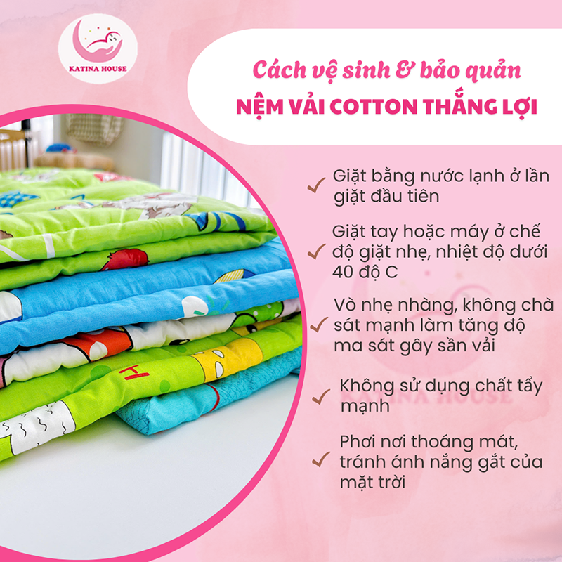 Nệm chần gòn 80x120cm: chất liệu cotton Thắng Lợi