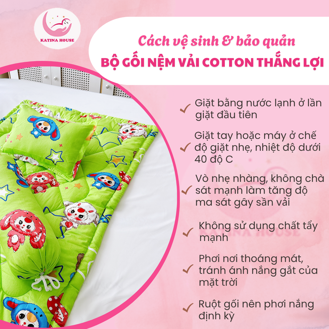 Mền kèm bộ : 75x95cm , mền nhỏ gọn phù hợp cho các bé mang đi học tiện lợi.