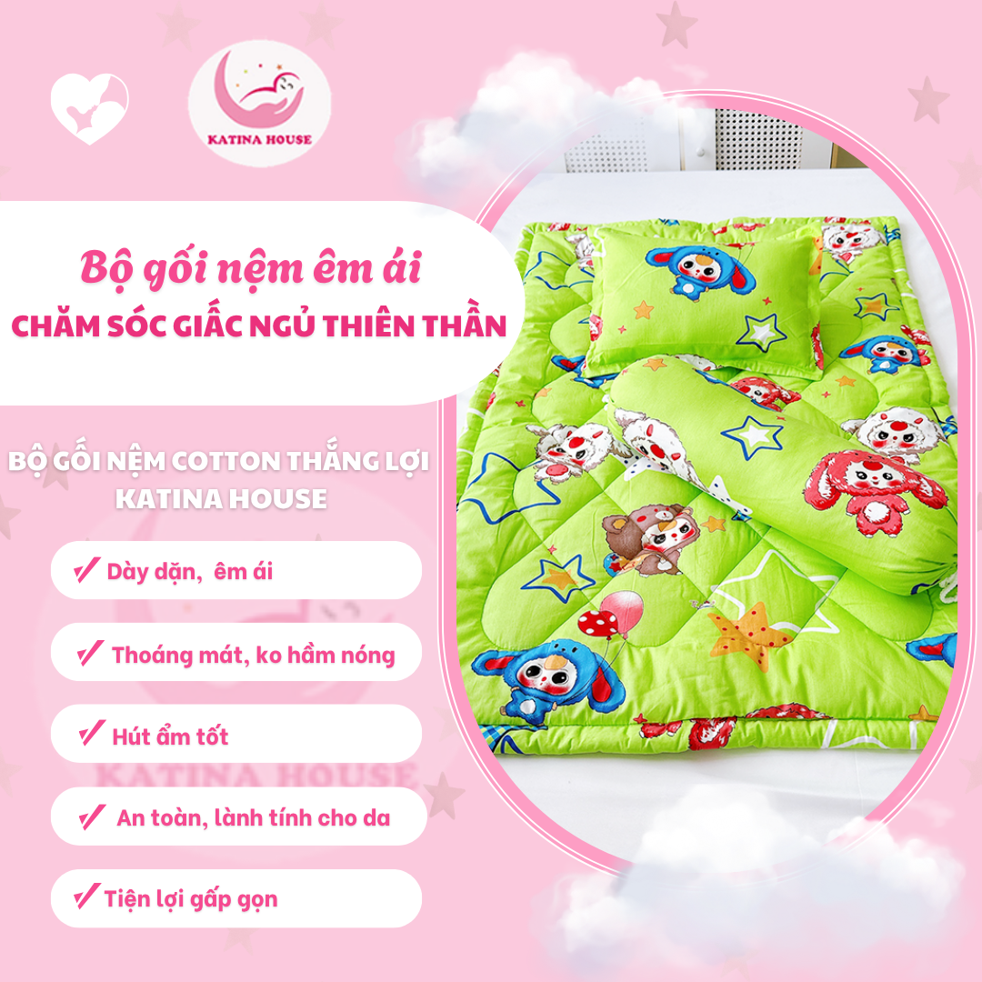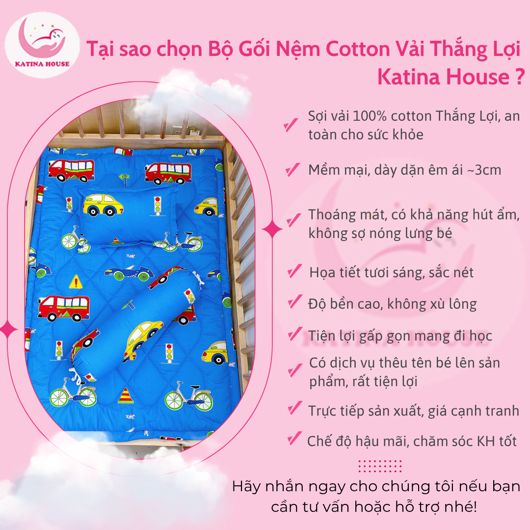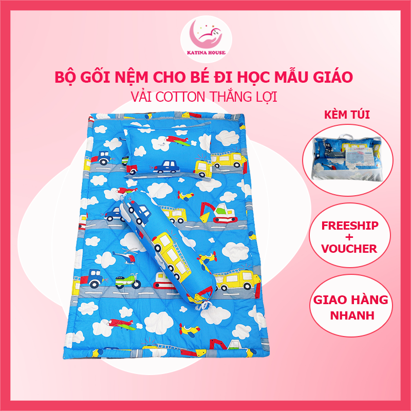 Để đáp ứng được nhu cầu và các tiêu chí của các mẹ, Shop cho ra sản phẩm Bộ nệm gối cho bé đi học, được lấy chất liệu từ vải cotton, loại vải mềm, mát, thấm hút mồ hôi tốt và đặc biệt có nhiều họa tiết họa hình thân thiện gần gũi với bé như: doremon, kitty, khủng long, gấu. xe ô tô,.... hi vọng sẽ làm hài lòng các mẹ và bé yêu nhà mình.