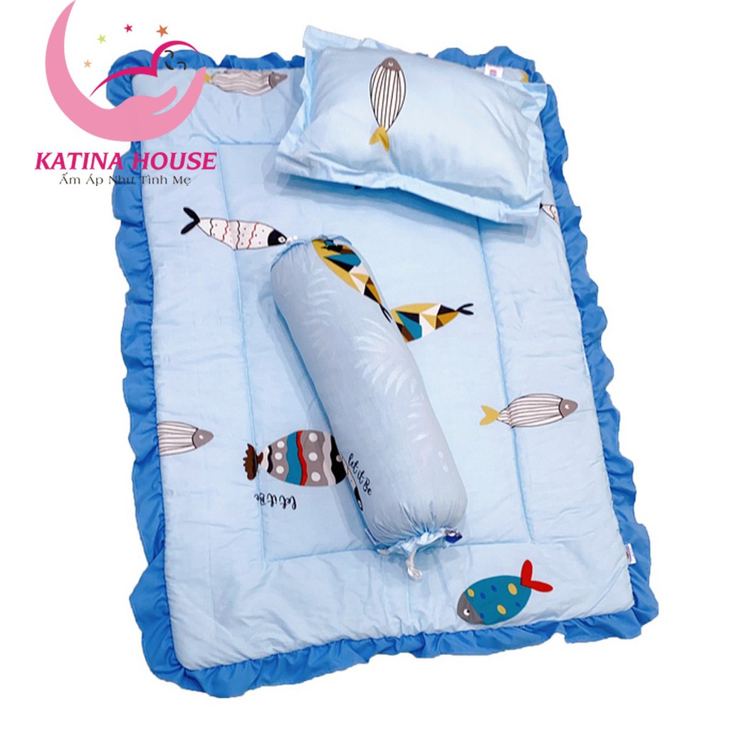 Bộ nệm gối trẻ em 1-4t, vải cotton 100% thoáng mát, nệm bèo đáng yêu cho bé 75x110cm