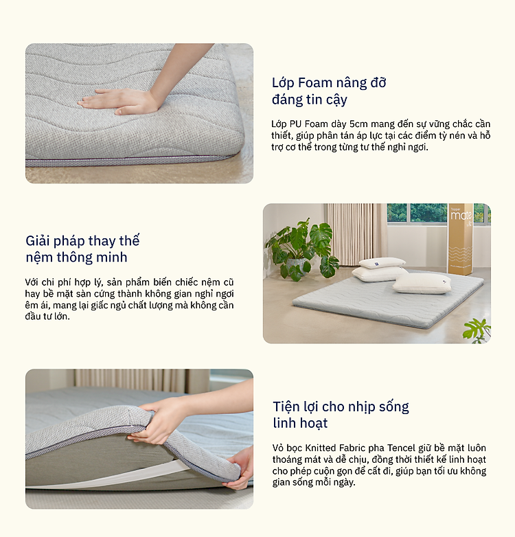 - Sản phẩm bao gồm: 1 Nệm Foam Topper
