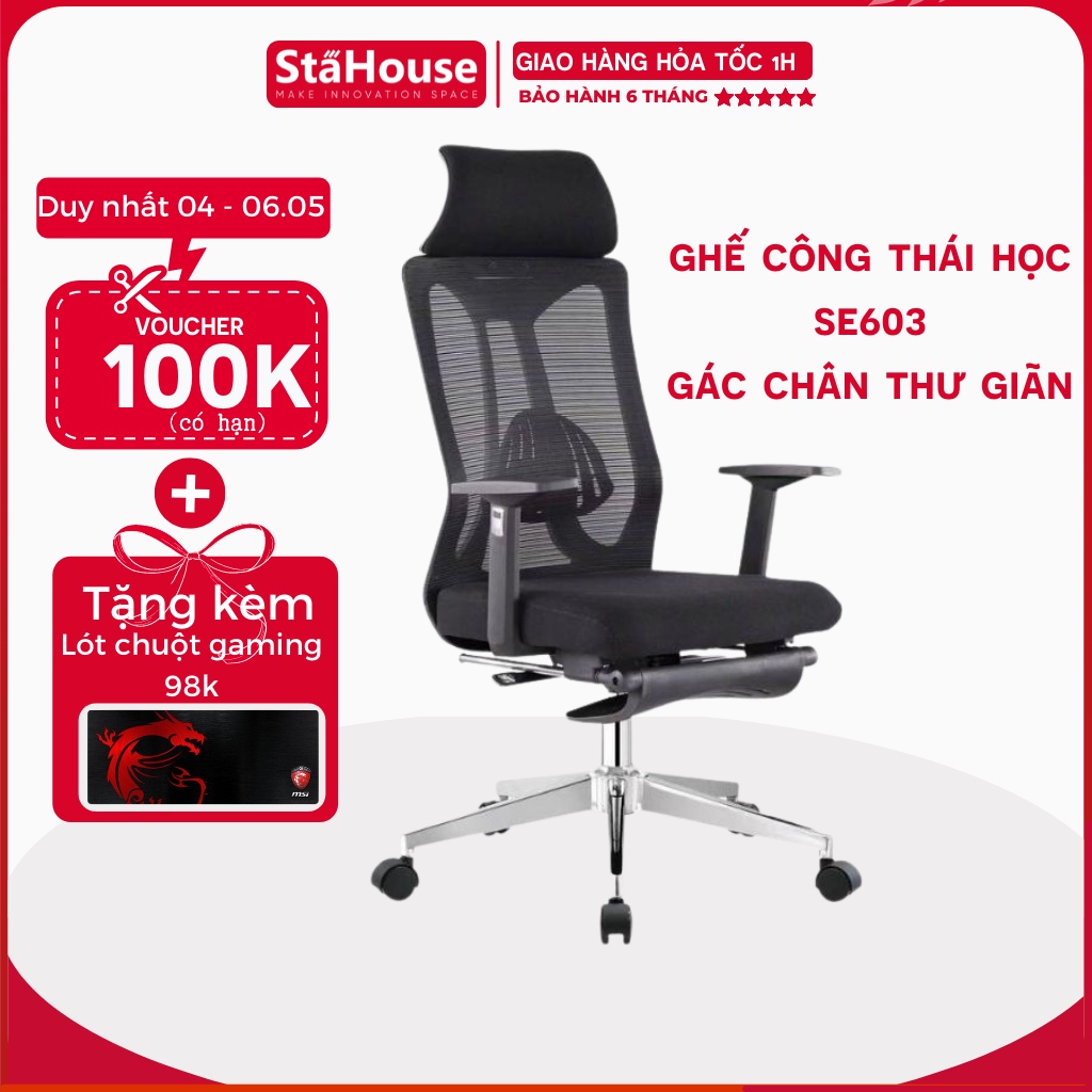 Giới thiệu Ghế Công Thái Học Văn Phòng Ngả Lưng Thư Giãn Có Gác Chân, Làm Việc tại Nhà SE603 STAHOUSE