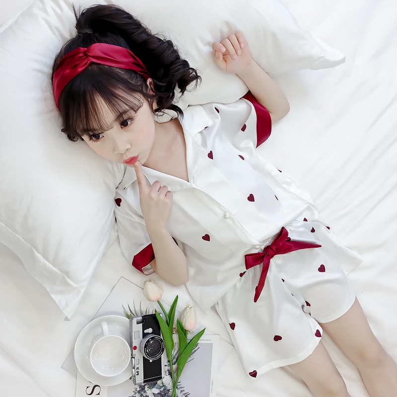 Giới thiệu Bộ Đồ Ngủ Ngắn Tay In Họa Tiết Trái Tim Xinh Xắn Dành Cho Bé Gái