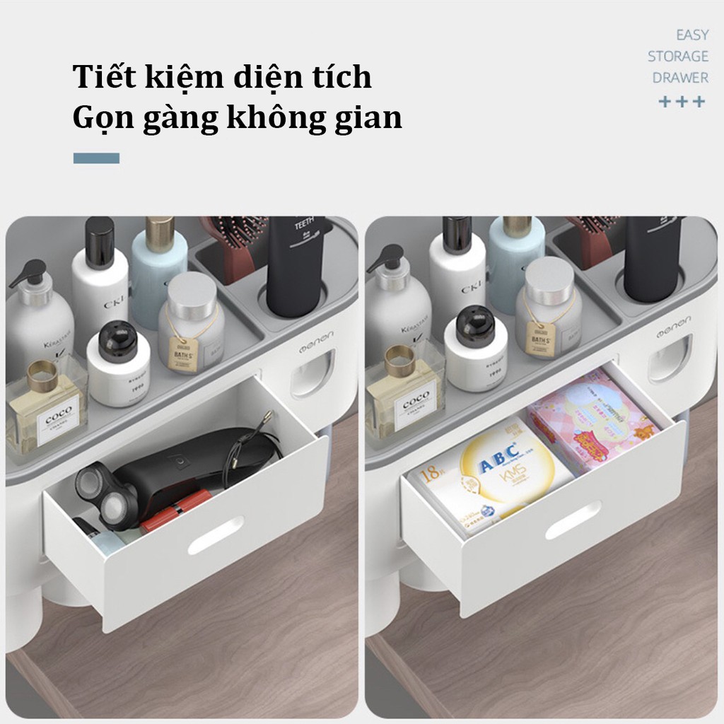 Bộ nhả kem đánh răng tự động dán tường nhà vệ sinh có ngăn chứa đồ tiện lợi kèm 2 cốc