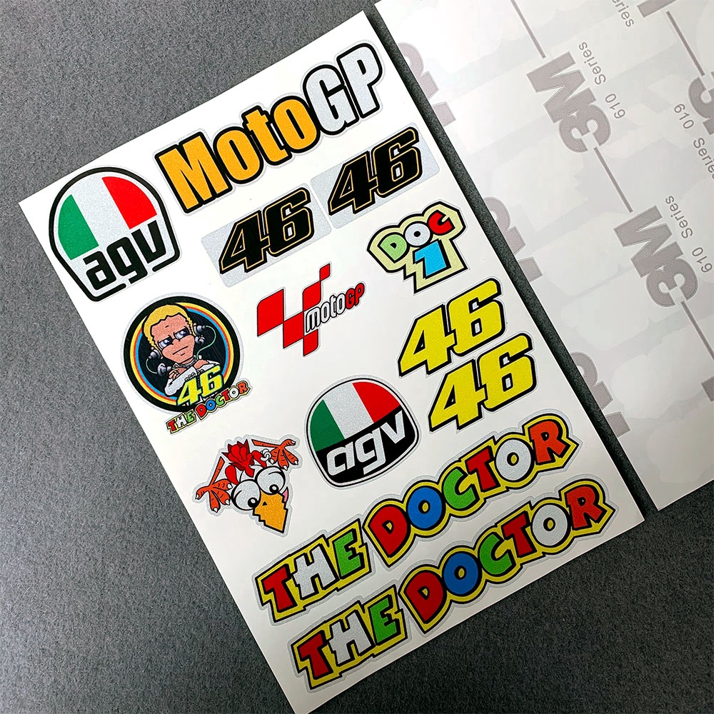 3M Logo Highly Reflective Motorcycle The Doctor VR46 Rossi Turtle Motorcycle Sticker MotoGP Motocross Helmet Reflective Decal Stickers