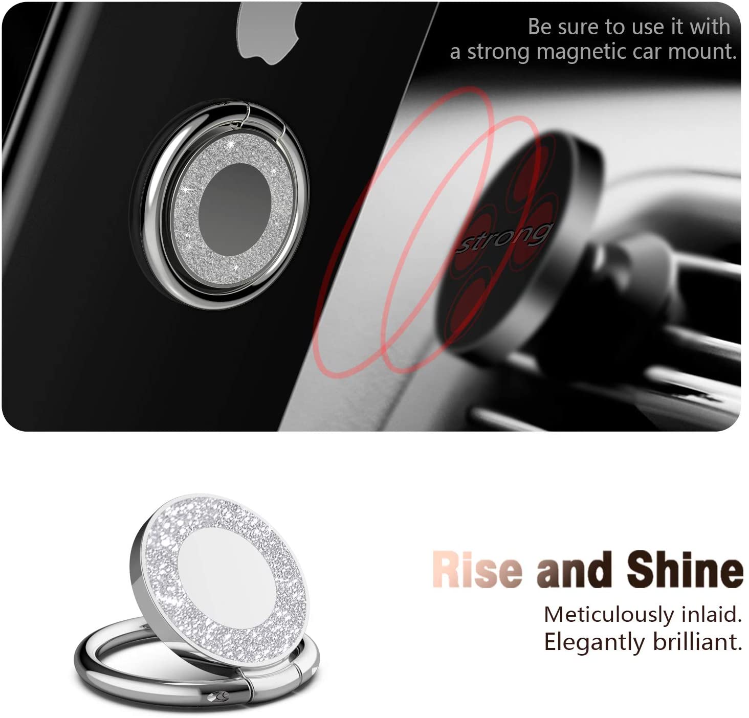 [360 Degrees Mobile Magnet Phone Holder][Metal Finger Phone Stand][Magnet On Car Bracket]