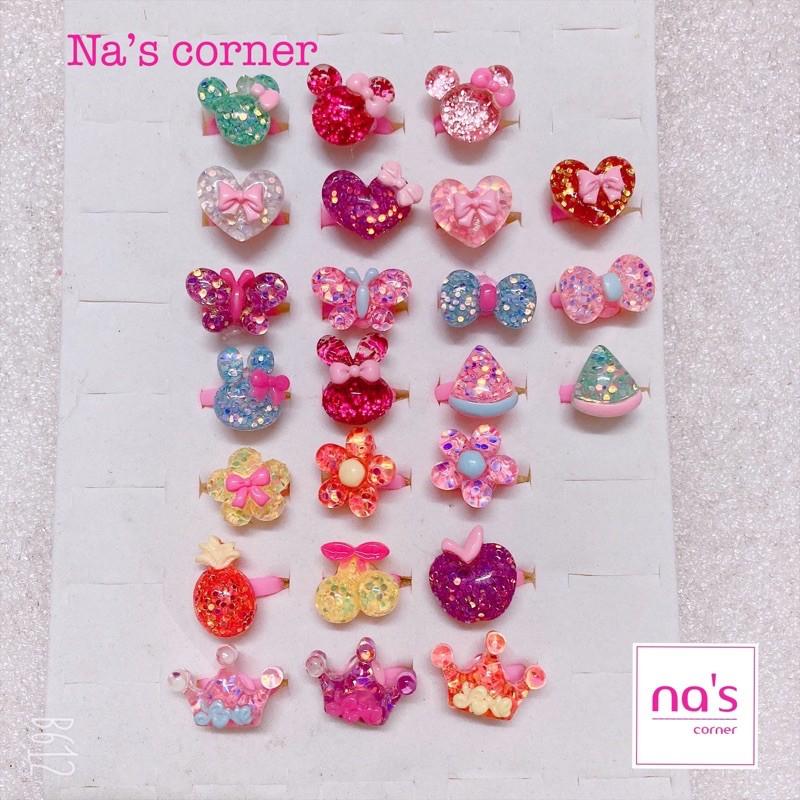 Nhẫn nhựa nhũ kim tuyến 3D em bé có kích thước linh động, không cố định