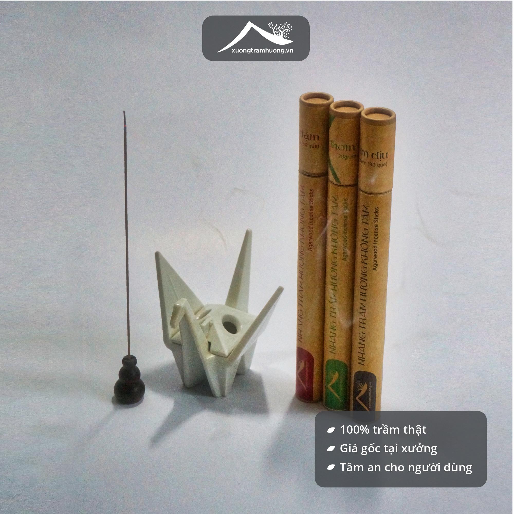 ️Thích hợp làm quà tặng tân gia, khai trương văn phòng, quà tặng đồng nghiệp, cấp trên ️ Hương trầm tạo cảm giác thư giãn, minh mẫn, tịnh tâm III. Vì Sao Nên Chọn Sản Phẩm Nhang Trầm Hương Không Tăm Sạch Nguyên Chất Xưởng Trầm Hương ️Giá trực tiếp từ xưởng nhờ tối ưu nguồn nguyên liệu tại chỗ loại bỏ sạch tạp chất, đúng phân loại trầm cho sản phẩm. ️Kinh nghiệm lâu năm, kiểm soát quy trình sản xuất chặt chẽ đảm bảo trải nghiệm trầm thật tốt nhất cho người dùng. ️Không hoá chất bảo quản, không hoá chất tạo cháy