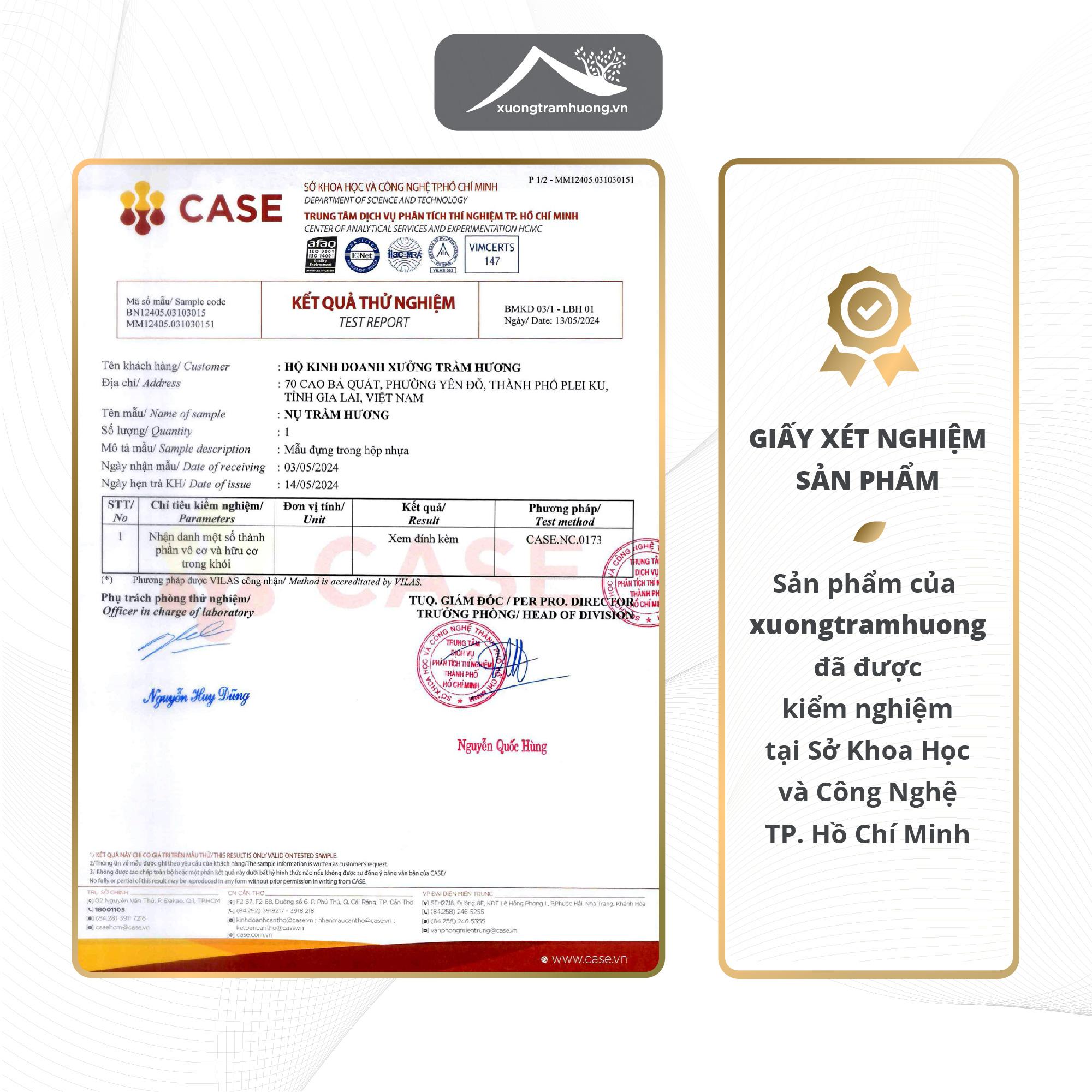 Chất lượng sản phẩm được công nhận bởi Bộ Khoa Học và Công Nghệ với nồng độ khói hương đạt chuẩn