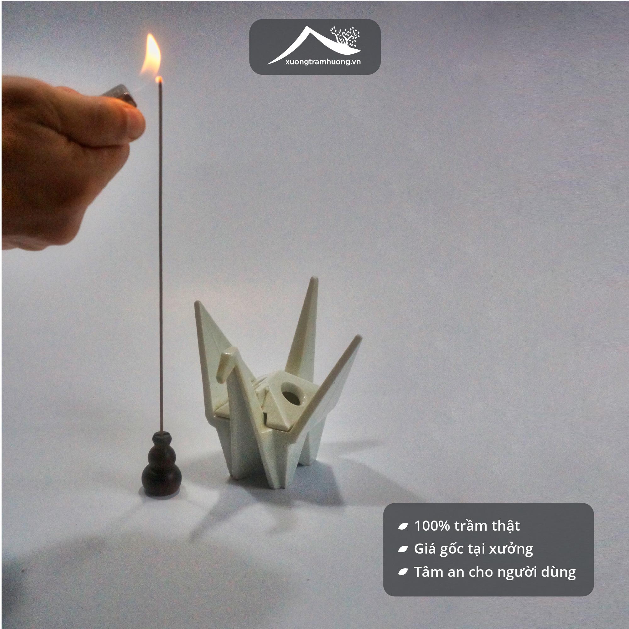 IV. Hướng Dẫn Sử Dụng Và Bảo Quản Nhang Trầm Hương Không Tăm Sạch Xưởng Trầm Hương ️Lấy nhang ra khỏi hộp nhẹ nhàng để tránh gẫy nhang. Dùng đế cắm nhang hoặc khay đốt trầm chuyên dụng. Khi dùng, bạn cắm một đầu nhang vào chân đế rồi đốt đầu ở trên, phần đế ngoài nhiệm vụ giữ nhang đứng thẳng còn giúp cho tàn nhang không bị rớt ra ngoài, đốt nhang xong sẽ rất dễ vệ sinh do tàn hương không bị rơi vãi lung tung. ️Sản phẩm của Xưởng Trầm Hương được làm trong điều kiện phơi phóng kỹ lưỡng dưới nắng to & gắt của Cao Nguyên Gia Lai nên chỉ cần bảo quản sản phẩm nơi khô ráo, thoáng mát để tránh ẩm mốc. ️ Đóng nắp hộp nhang sau khi sử dụng.