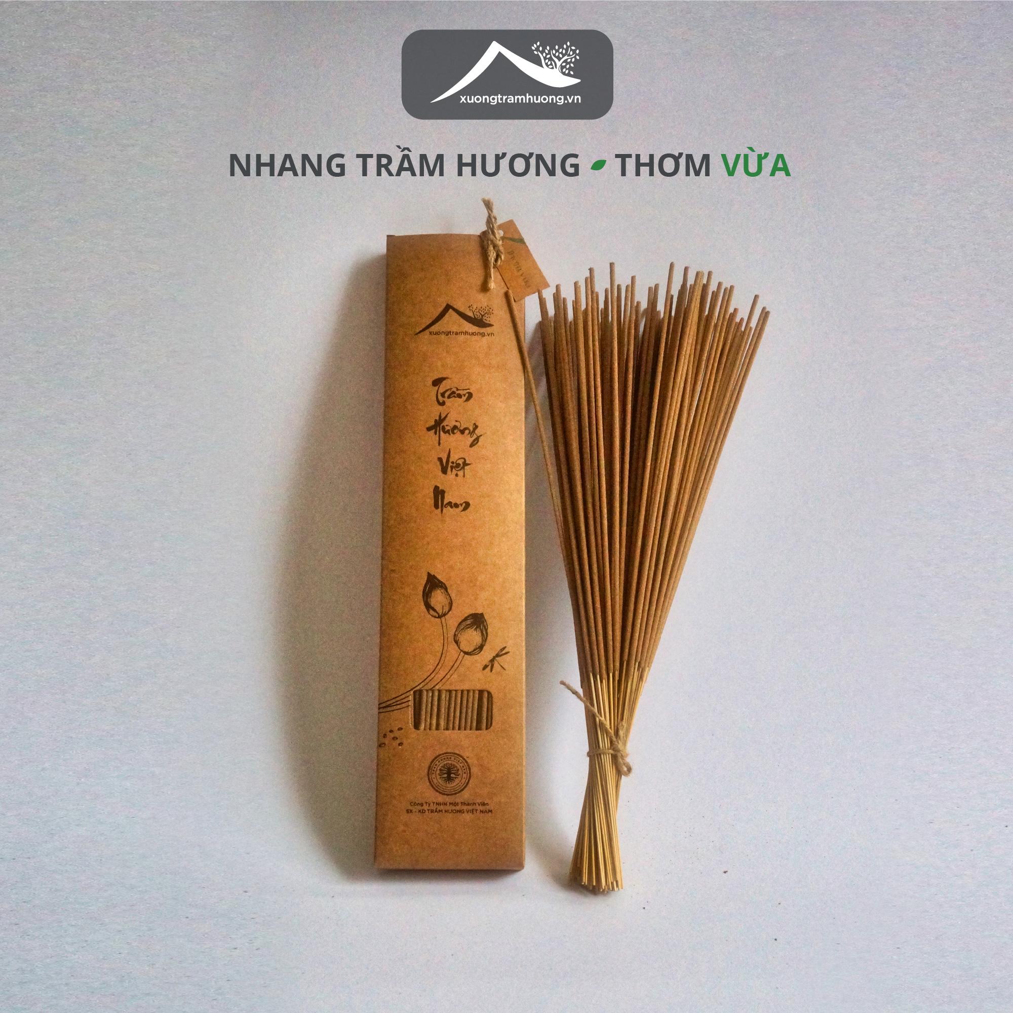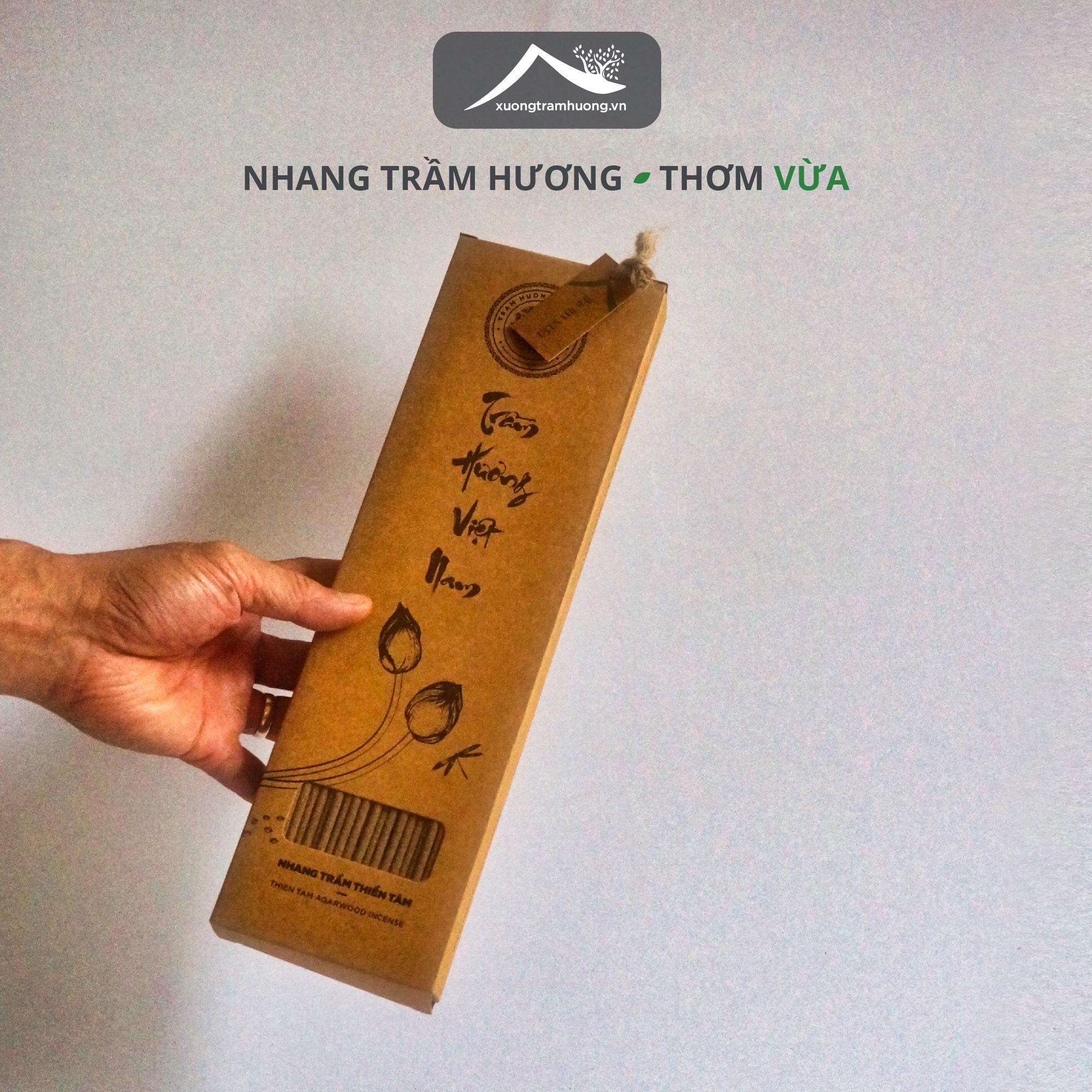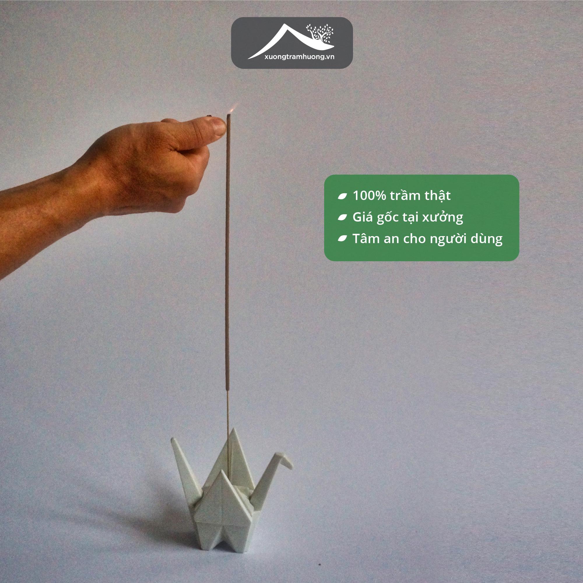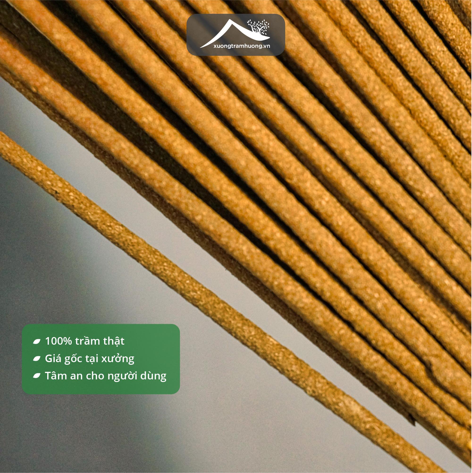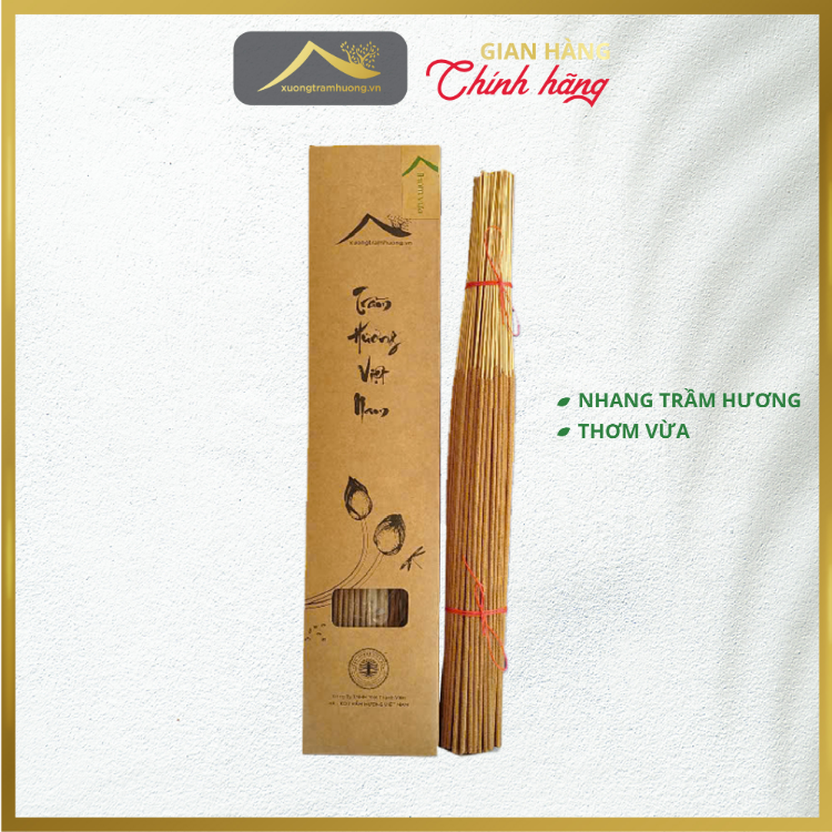 Xưởng Trầm Hương với bí quyết lành nghề, chọn lọc, phân loại trầm kỹ lưỡng, tạo ra sản phẩm nhang trầm lành, sạch, với mùi thơm vừa từ loại trầm khoan trên cây dó 10 -15 năm tuổi, lượng tinh dầu cao cho mùi trầm ngọt, dịu, lượng khói nhang ít phù hợp cho không gian nhỏ 20-30m2. Thưởng trầm là trải nghiệm của giác quan, tùy theo cảm nhận từng cá nhân, từng phong cách riêng biệt và nhang trầm hương sạch thơm vừa từ Xưởng Trầm Hương mang lại sự nhẹ nhàng bay bổng nên sẽ không nồng như những loại nhang có sử dụng hương liệu nhân tạo khác. Khách hàng hãy chat với shop khi cần hỗ trợ thêm thông tin về sản phẩm Theo dõi shop để nhận ngay ưu đãi cho đơn hàng đầu tiên Quà tặng vào các dịp sale lớn, ngày đôi, đầu tháng, giữa tháng và ngày lương về II. Công Dụng Nhang Trầm Hương Sạch Xưởng Trầm Hương Thơm Vừa ️Sử dụng trong thờ cúng gia tiên, các hoạt động tâm linh ️Xông nhà, tẩy uế, thờ cúng phong thuỷ ️Diệt khuẩn, thanh lọc không khí, xua đuổi côn trùng. ️Hương trầm tạo cảm giác thư giãn, tịnh tâm. III. Vì Sao Nên Chọn Sản Phẩm Nhang Trầm Hương Sạch Xưởng Trầm Hương ️Giá trực tiếp từ xưởng nhờ tối ưu nguồn nguyên liệu tại chỗ loại bỏ sạch tạp chất, đúng phân loại trầm cho sản phẩm. ️Kinh nghiệm lâu năm, kiểm soát quy trình sản xuất chặt chẽ đảm bảo trải nghiệm trầm thật tốt nhất cho người dùng. ️Không hoá chất bảo quản, không hoá chất tạo cháy IV. Hướng Dẫn Sử Dụng Và Bảo Quản Nhang Trầm Hương Sạch Xưởng Trầm Hương ️ Lấy nhang ra khỏi hộp nhẹ nhàng, tránh làm gẫy nhang, đốt phần ngọn của nhang với lượng vừa đủ (không đốt quá nhiều), để nhang cháy từ từ và cảm nhận hương thơm từ nhang. ️ Sản phẩm của Xưởng Trầm Hương được làm trong điều kiện phơi phóng kỹ lưỡng dưới nắng to & gắt của Cao Nguyên Gia Lai nên chỉ cần bảo quản sản phẩm nơi khô ráo, thoáng mát để tránh ẩm mốc. ️ Đóng nắp hộp nhang sau khi sử dụng. V. Chính sách bảo hành từ Xưởng Trầm Hương Đổi trả theo đúng quy định của Sàn - Hàng hoá vẫn còn mới, chưa qua sử dụng - Hàng hoá bị lỗi hoặc hư hỏng do vận chuyển hoặc do nhà sản xuất VI. Về thương hiệu Xưởng Trầm Hương Sứ mệnh: Xưởng Trầm Hương với mong muốn mọi người Việt đều có cơ hội trải nghiệm TRẦM THẬT từ nguồn nguyên liệu sạch, giá gốc tại xưởng, tạo không gian sống sạch, tâm trí bình an và hướng đến cuộc sống tốt đẹp, thịnh vượng hơn. Cam kết ️ 100% trầm thật ️ Giá gốc tại xưởng ️ Tâm an cho người dùng Về Xưởng Trầm Hương
