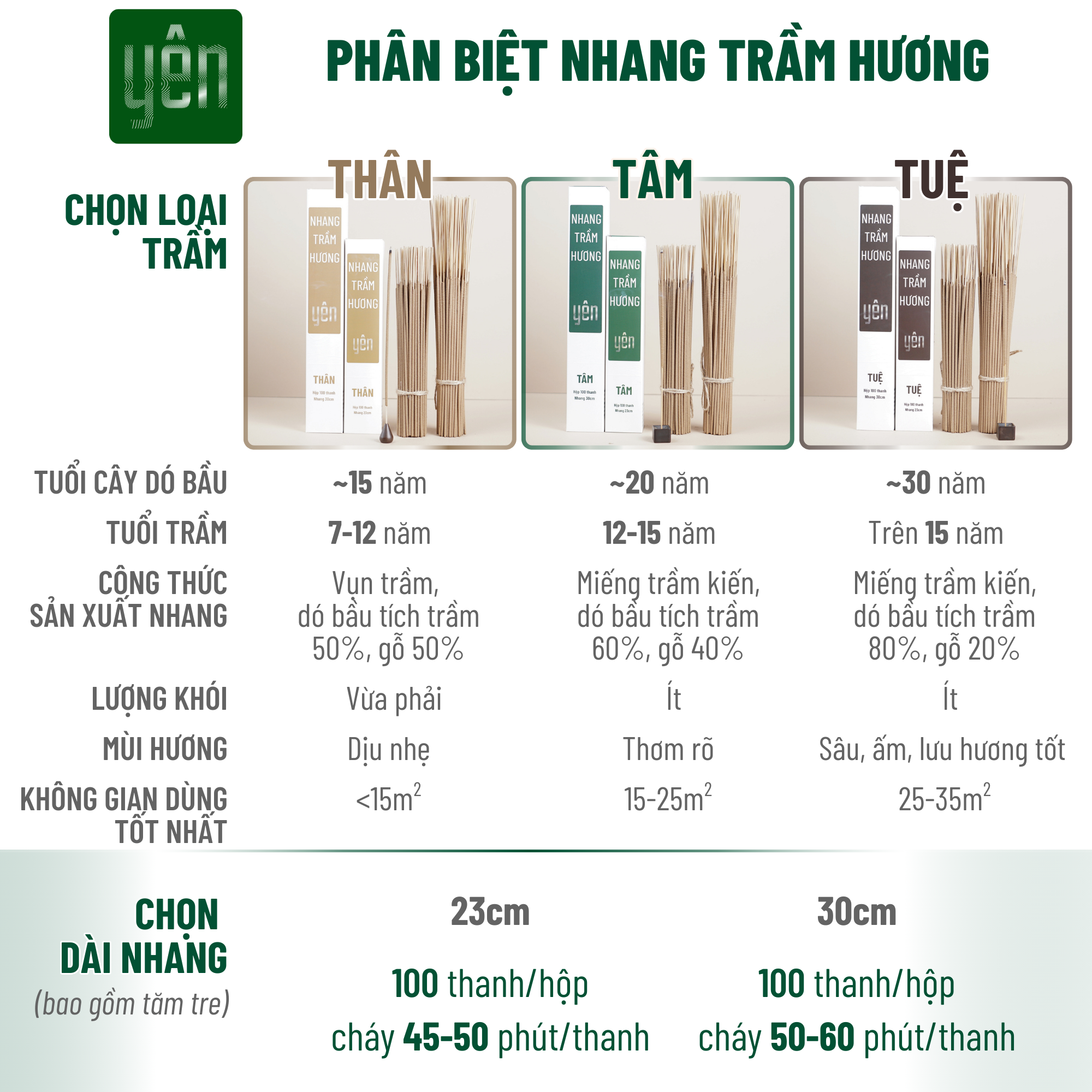 I. Thông tin sản phẩm Nhang Trầm Hương Loại Tuệ Yên Dài 23-30cm Hộp 100 thanh Sạch Tự Nhiên Ít Khói