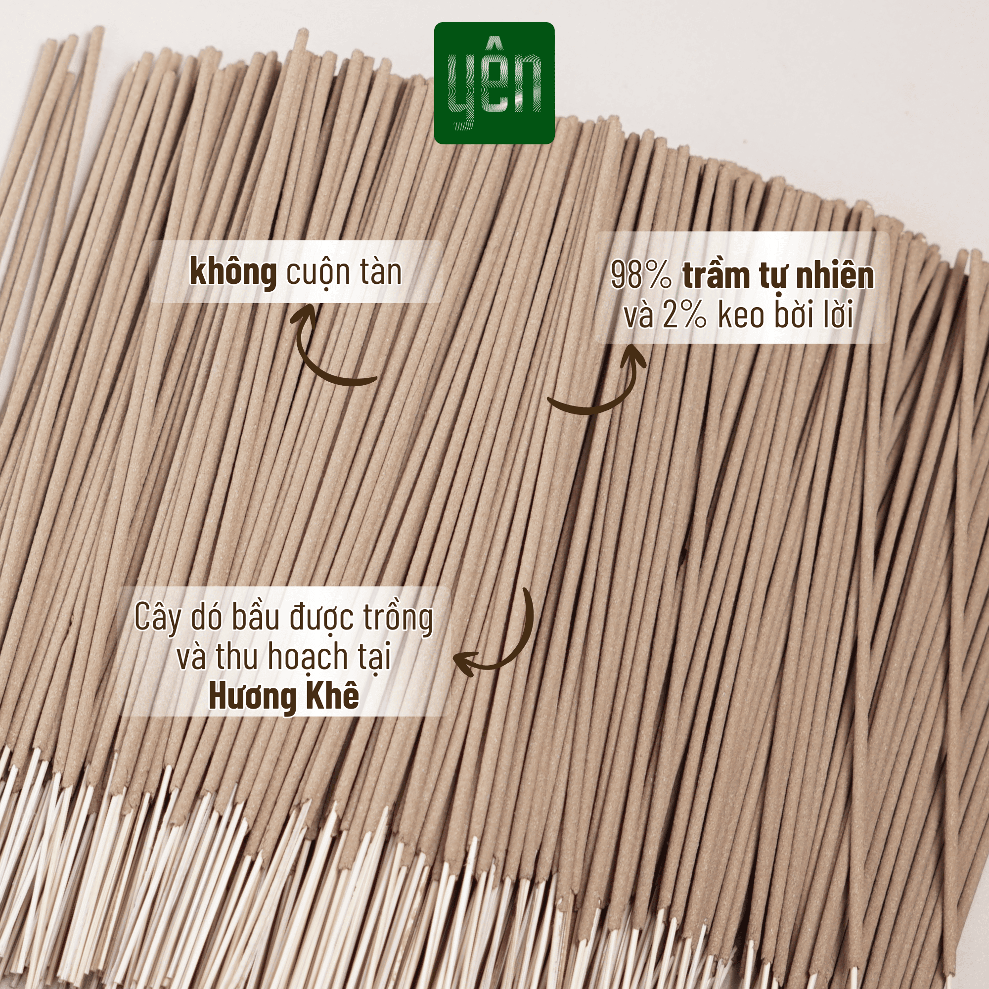 Nhang trầm hương chân mộc Yên Thảo Mộc – sạch tự nhiên, không hóa chất, ít khói, thơm nhẹ, phù hợp thiền, thờ, thư giãn.