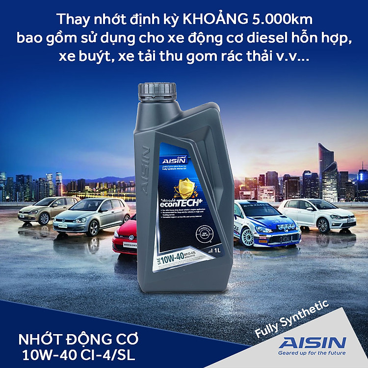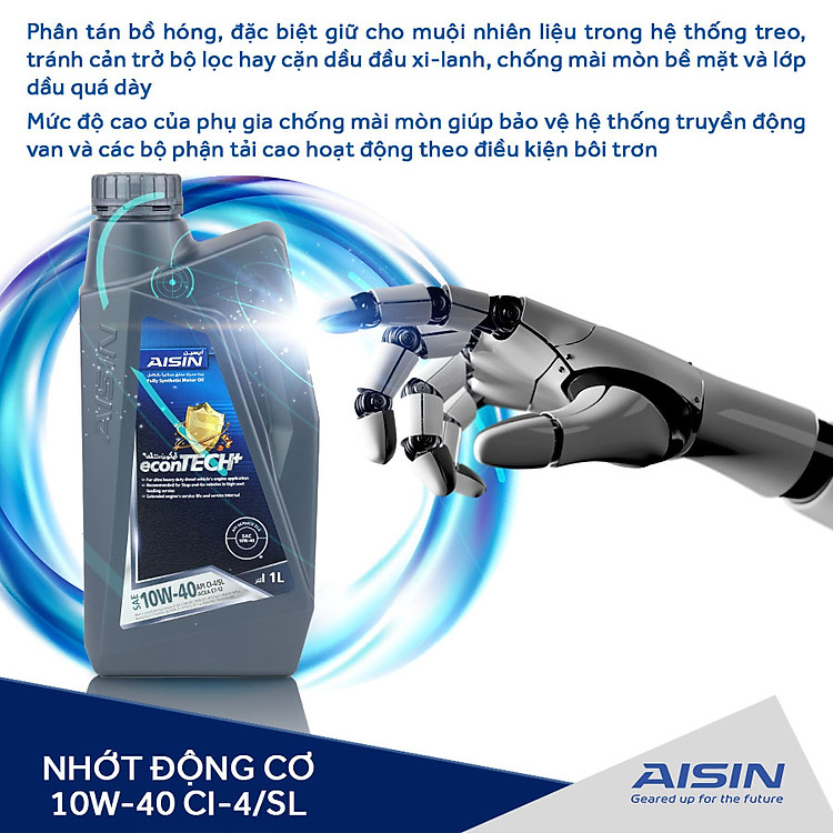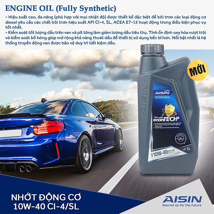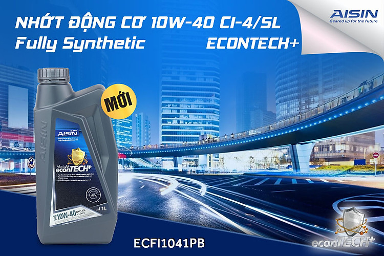 Nhớt Động Cơ AISIN ECFI1041PB 10W-40 CI4 / SL econTECH+ Fully Synthetic 1L là dầu nhớt hiệu suất cao, dầu động cơ diesel hạng nặng được thiết kế đặc biệt để bôi trơn các loại động cơ dầu và xăng yêu cầu các chất bôi trơn hiệu suất API CI-4/SL cũng như đáp ứng ACEA E7-12 chất bôi trơn hiệu suất hoạt động trong các điều kiện dịch vụ khắc nghiệt nhất.