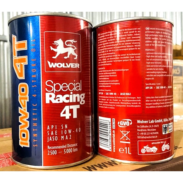 Wolver Special Racing là phiên bản đặc biệt của dòng sản phẩm nổi tiếng Wolver Racing. Sản phẩm được pha chế dầu gốc tổng hợp với hệ phụ gia thiết kế chuyên dụng cho động cơ xe máy 4 thì, bao gồm cả động cơ xe phân khối lớn, xe số và xe tay ga. Nhớt Wolver Racing 4T 10W40 là sản phẩm dầu nhớt được sản xuất tại #Đức và nhập khẩu về Việt Nam. Với công nghệ hiện đại tân tiến, nhớt Wolver Racing có thể hỗ trợ tốt cho động cơ mô tô phân khối lớn, xe thể thao và tất cả các loại xe máy có bộ ly hợp khô và ướt (xe số và xe tay ga) 4 thì.