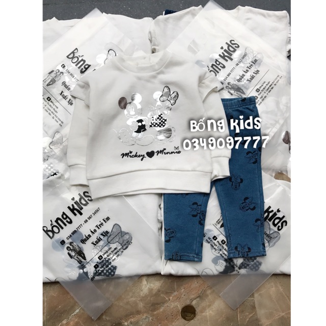 Bộ Nỉ Bé Gái Minnie&Mickey Tay Nhún Primark
