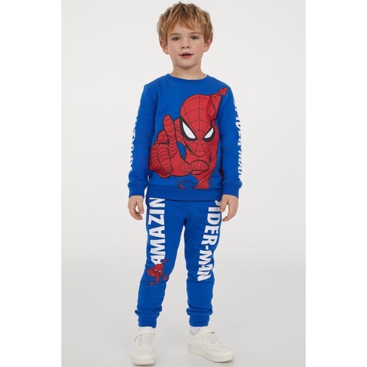 Thời trang trẻ em & trẻ sơ sinh > Quần áo bé trai > Com lê & đồ bộ || Bộ nỉ Spiderman xanh dương HM 10-30kg (có ảnh thật)