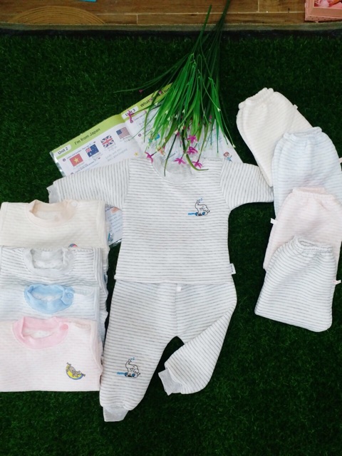 Giới thiệu Bộ nỉ xốp kẻ cài vai siêu mềm mịn ấm áp dành cho bé trai/gái B01