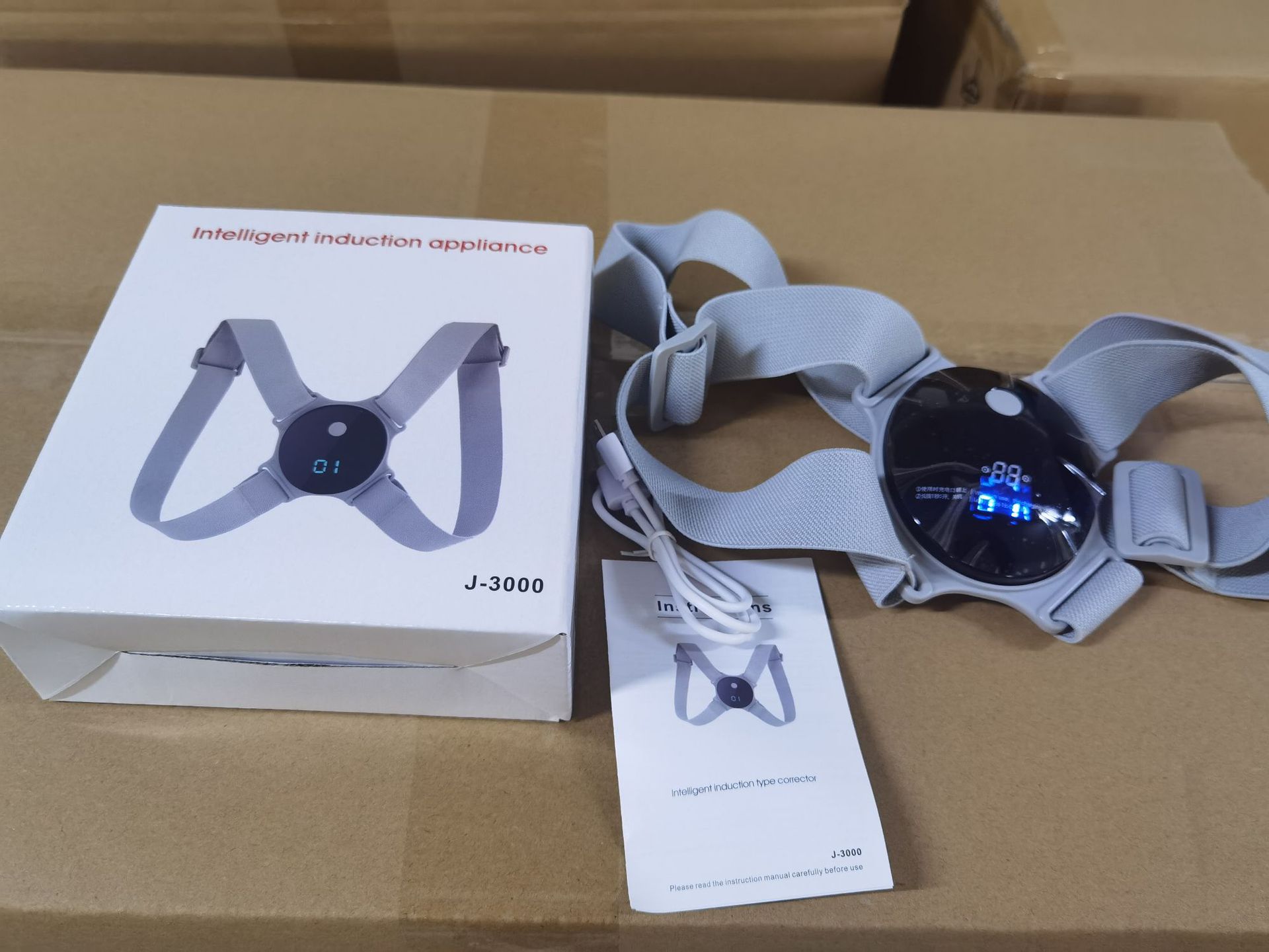 Bộ sản phẩm bao gồm: 1 Đai Nịt Chống Gù Lưng Cảm Biến Có LED J-3000