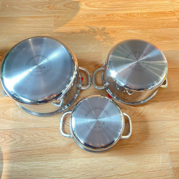 Tên sản phẩm: Bộ nồi Inox 3 lớp đúc liền khối Kalpen Kampfer KF3