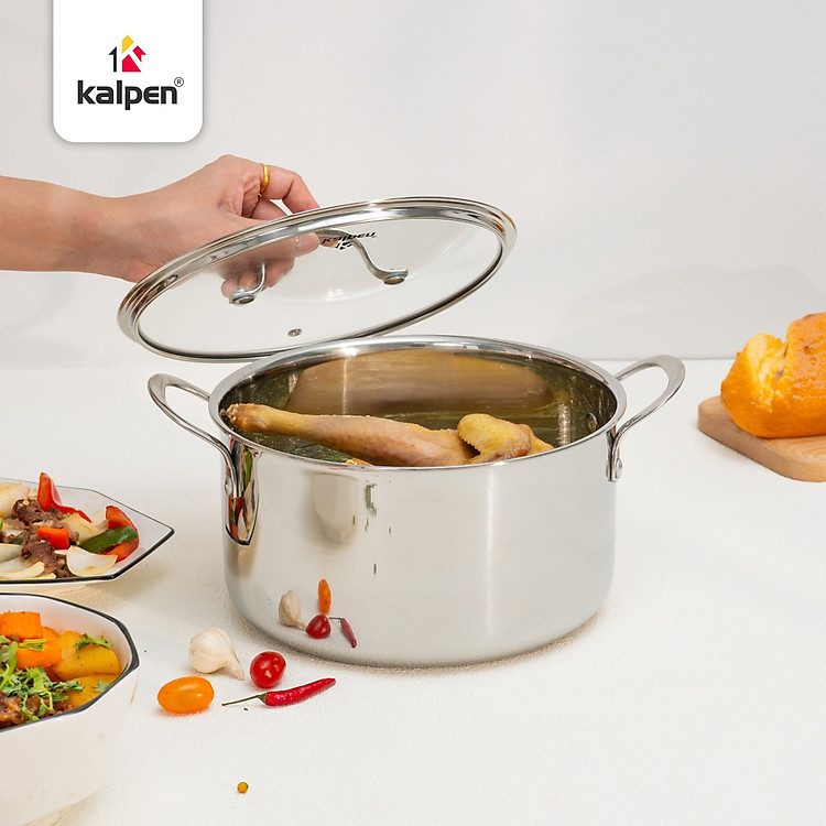 Không chỉ bền bỉ, bộ nồi inox 3 lớp liền khối Kalpen Kampfer còn ghi điểm tuyệt đối với người nội trợ nhờ thiết kế hiện đại và đẳng cấp. Toàn bộ bề mặt inox sáng bóng, kết hợp với quai cầm thanh mảnh, chắc chắn tạo nên tổng thể hài hòa, phù hợp với mọi không gian bếp – từ phong cách tối giản đến hiện đại sang trọng.