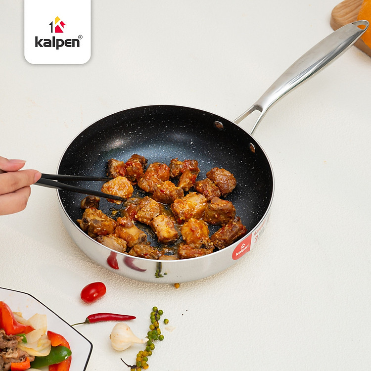 Chảo trong bộ nồi inox 3 lớp liền khối Kalpen Kampfer được phủ lớp chống dính Whiford cao cấp: