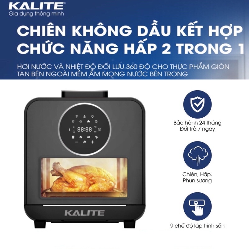 Thiết Bị Điện Gia Dụng > Đồ gia dụng nhà bếp > Nồi chiên không dầu || Nồi chiên hơi nước Kalite Steam Star, dung tích 15L, hấp chiên 2in1, bảng điều khiển điện tử, bảo hành chính hãng 24th