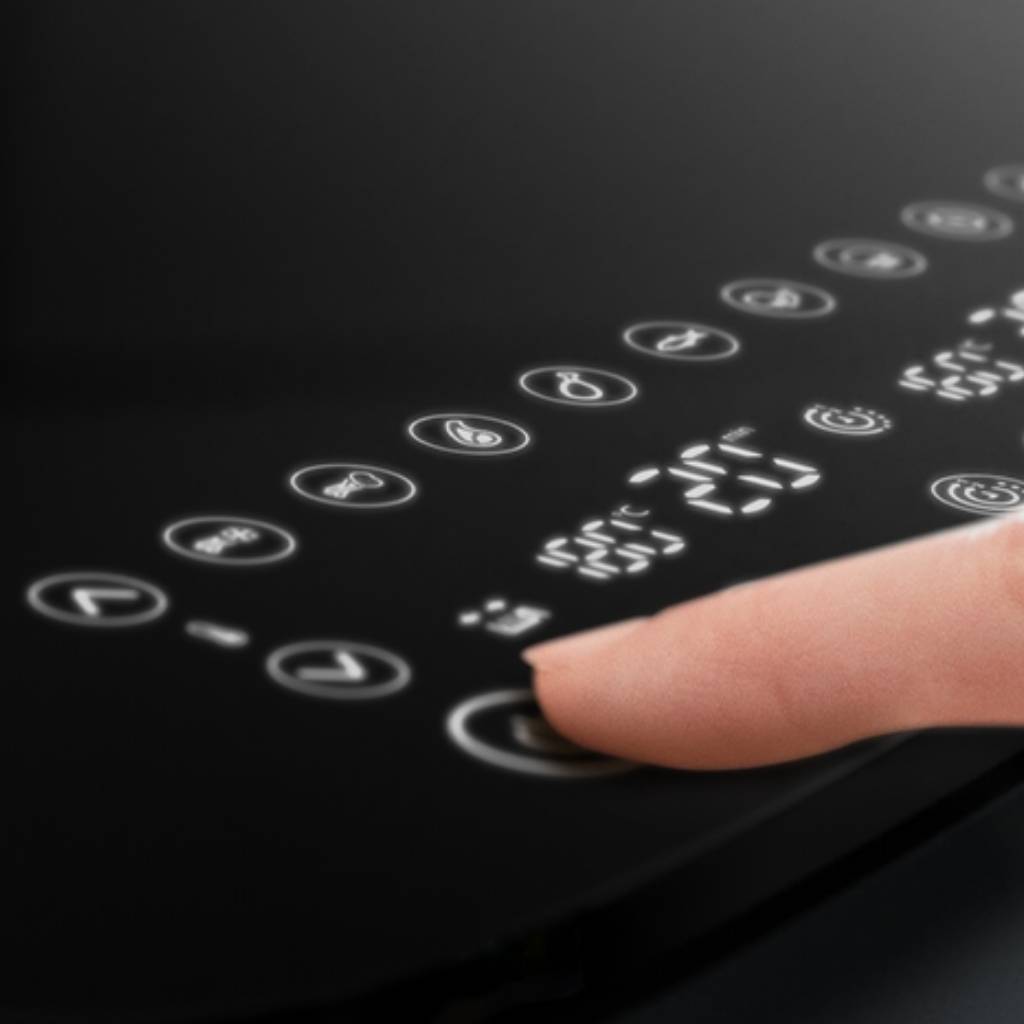 - Bảng điều khiển cảm ứng nhạy, các nút chức năng được thể hiện bằng ký hiệu trực quan, dễ hiểu, có thêm màn hình hiển thị cho phép người dùng dễ dàng theo dõi quá trình nấu.