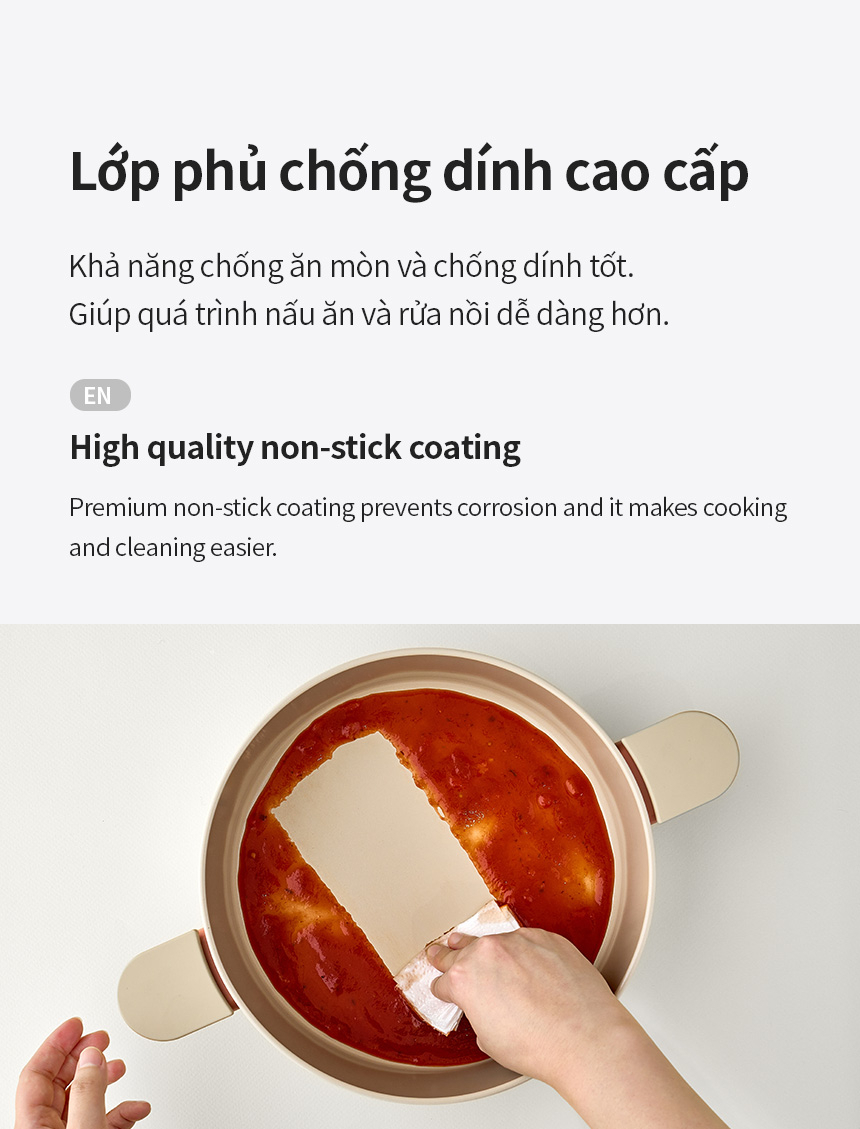 THIẾT KẾ TAY CẦM CÔNG THÁI HỌC: Thoải mái cầm nắm. Nắp có thể đặt trên nồi để tránh bị nhễu nước hoặc thức ăn lên mặt bàn.