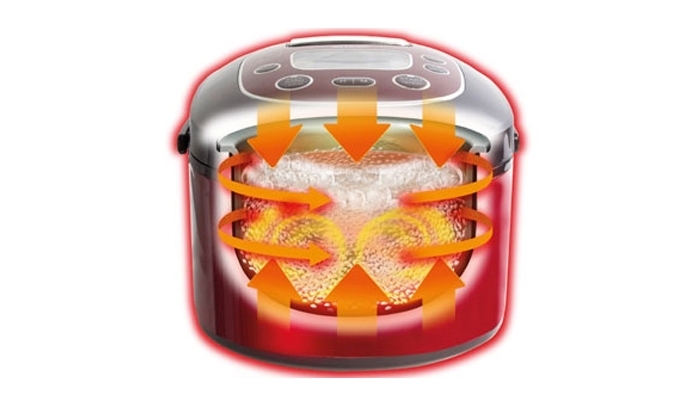 Nồi cơm điện tử sở hữu nhiệt lượng 3D được truyền từ phía dưới, phía trên và xung quanh nồi giúp hạt cơm chín đều. Công nghệ IH làm nồi nóng tự động không cần sự hỗ trợ của mâm nhiệt cho hạt cơm tơi xốp, nhiều dưỡng chất.