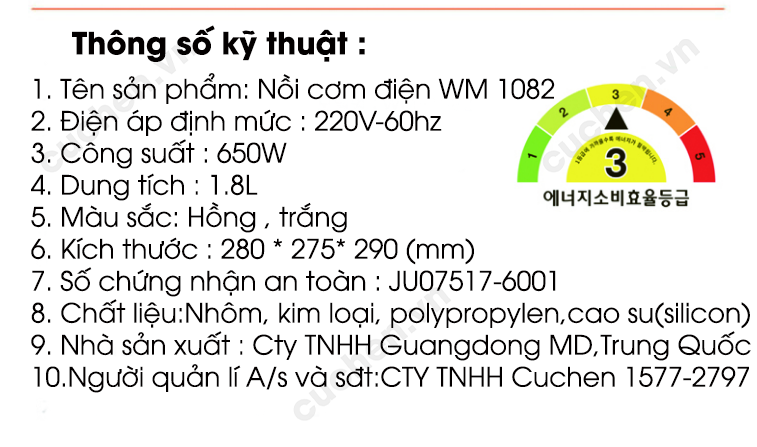 Chất liệu lòng nồi | Nhôm tráng lớp chống dính |